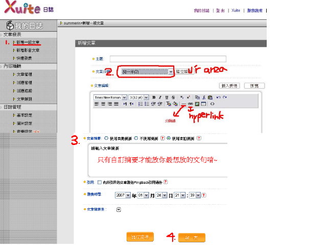 3. 寫完文章之後呢,如果不想整篇都一下子被看光光,就要使用自訂摘要,自己選自己要的段落複製在上面就好了。