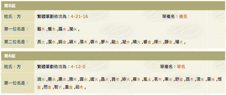 再來,知道了五行之後,就要找出相對應的字。『KKnews』這種內容農場居然是我參照的重點來源!?雖說內容還是有點誤差,像是屬木的當中混著屬水的五行,但有清楚的五行屬性分頁、筆劃排列,這真的比其他網站的排版好得太多了;